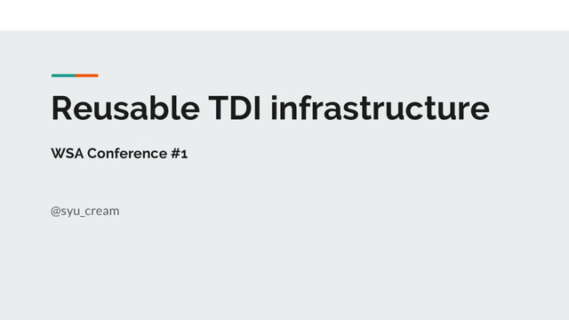 Reusable TDI infrastructure WSA Conference #1 @syu_cream