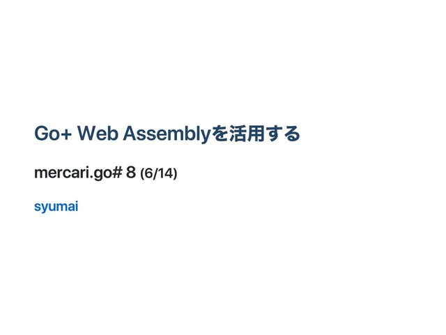 Go + WebAssemblyを活用する mercari.go #8 (6/14) syumai