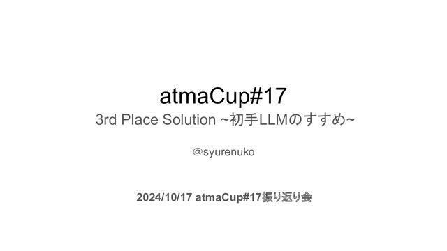 atmaCup#17 3rd Place Solution ~初手LLMのすすめ~ @syurenuko 2024/10/17 atmaCup#17振り返り会