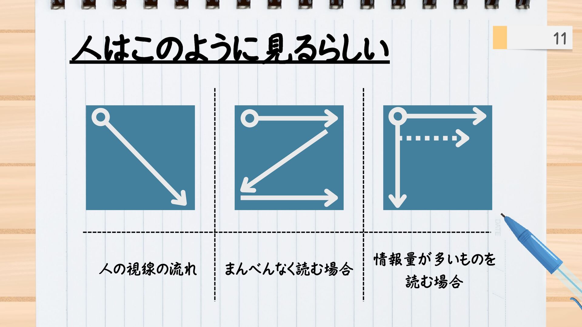 人はこのように見るらしい 人はこのように見るらしい 11 人の視線の流れ まんべんなく読む場合 情報量が多いものを 読む場合