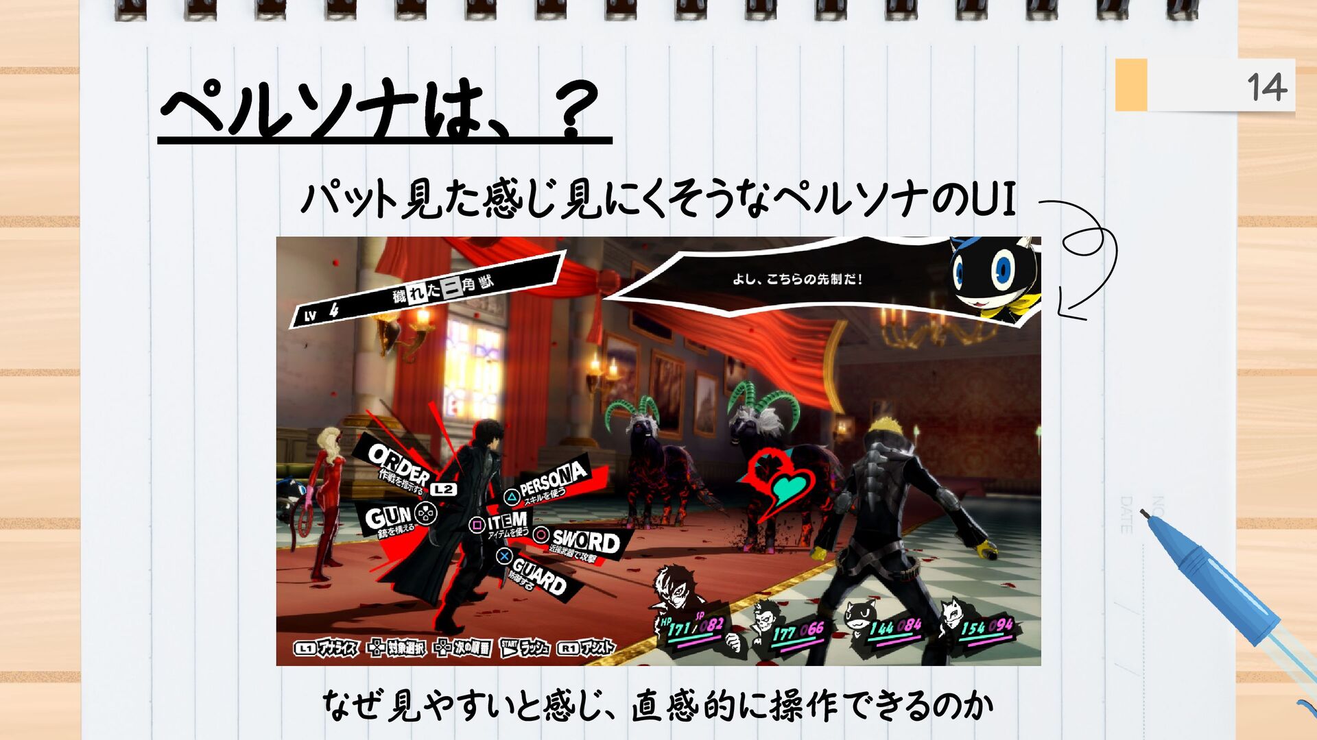 ペルソナは、? ペルソナは、? 14 パット見た感じ見にくそうなペルソナのUI なぜ見やすいと感じ、直感的に操作できるのか