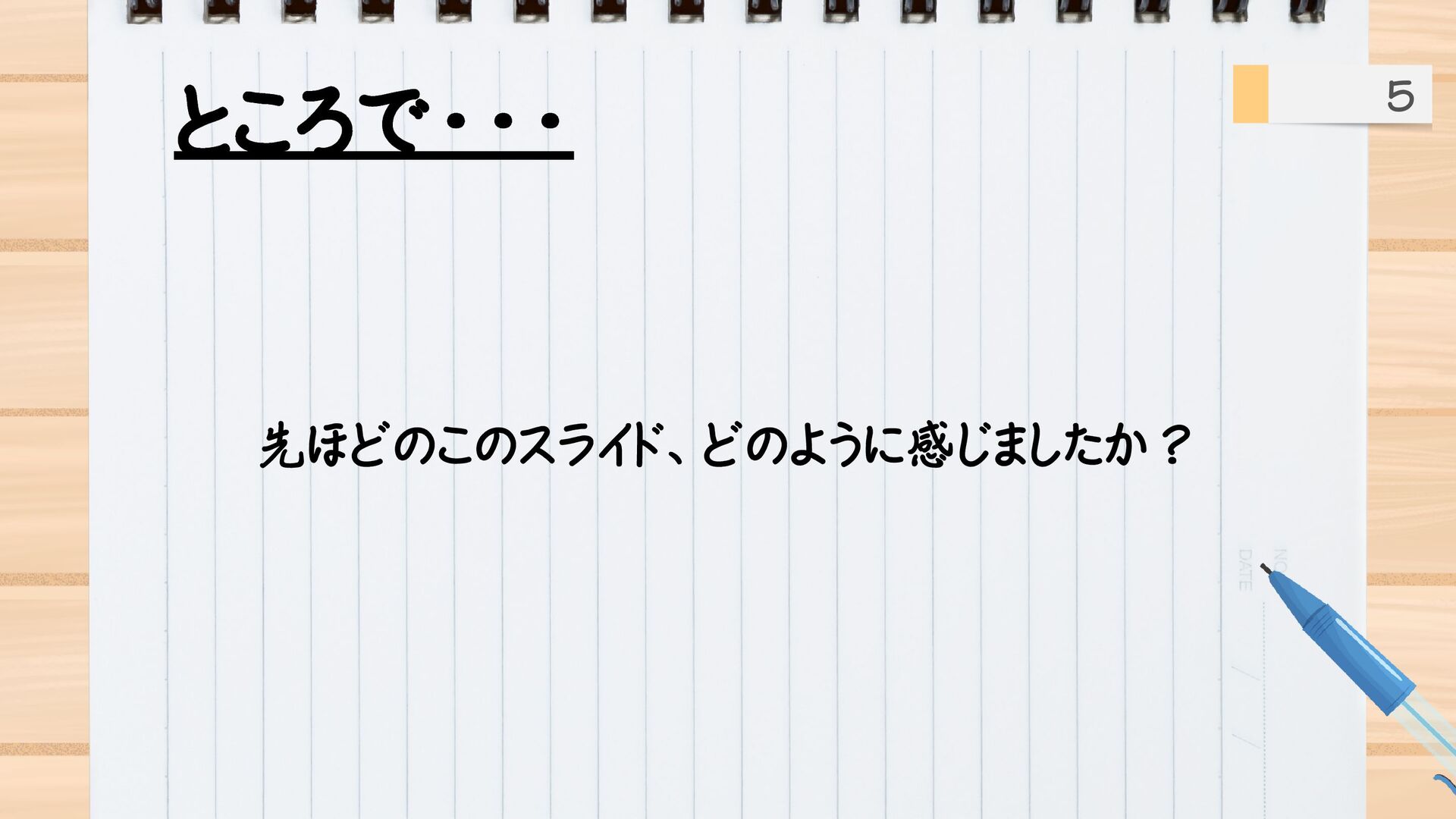 ところで・・・ ところで・・・ 5 先ほどのこのスライド、どのように感じましたか?