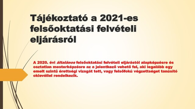 Tájékoztató a 2021-es felsőoktatási felvételi e...