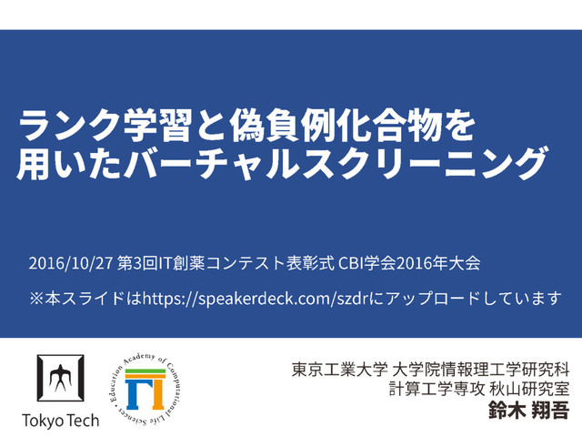 CBI学会2016年大会にて開催された、第3回IT創薬コンテスト表彰式で発表した資料です