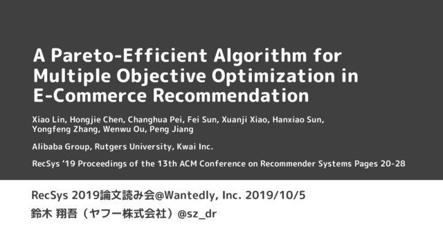 https://connpass.com/event/148001/ A Pareto-Efficient Algorithm for Multiple Objective Optimization in E-Commerce Recommendation