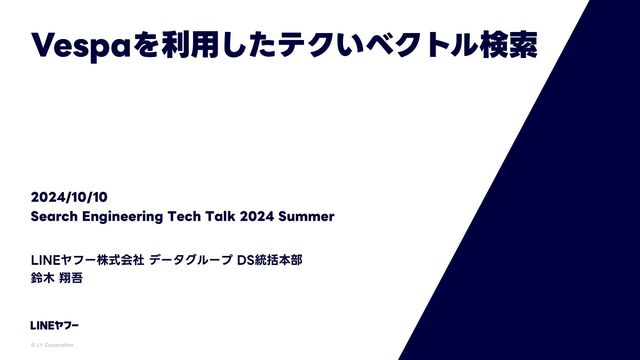 -:$PSQPSBUJPO -*/&Ϡϑʔגࣜձࣾ σʔλάϧʔϓ %4౷ׅຊ෦ ླ ᠳޗ 7FTQBΛར༻ͨ͠ςΫ͍ϕΫτϧݕࡧ 4FBSDI&OHJOFFSJOH5FDI5BML4VNNFS