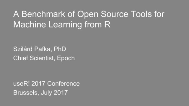 R Szilárd Pafka, PhD Chief Scientist, Epoch useR! 2017 Conference Brussels, July 2017