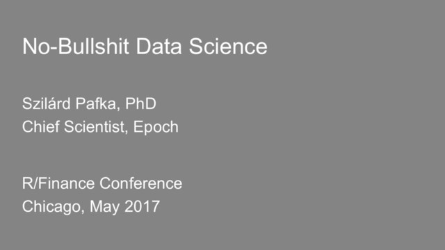 No-Bullshit Data Science - Keynote at the R/Finance conference - Chicago, May 2017