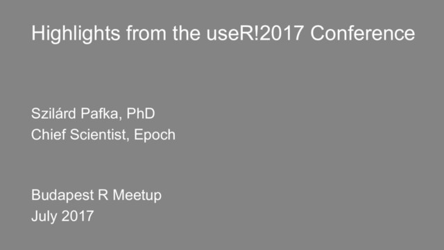 Highlights from the useR!2017 Conference Szilárd Pafka, PhD Chief Scientist,