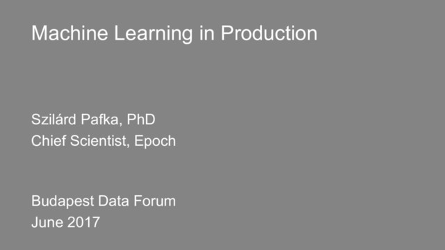 Machine Learning in Production Szilárd Pafka, PhD Chief Scientist, Epoch