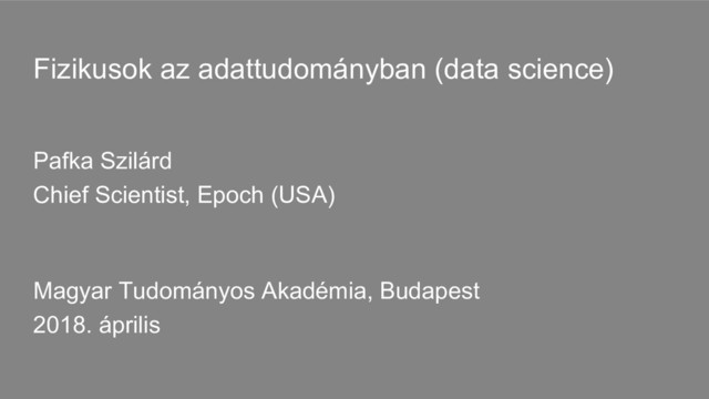 networks (60s/80s) support vector machines (90s) random forests (90s) gradient boosting (90s) deep learning neural networks (2000s) Source: Hastie etal, ESL 2ed y = f(x) “Learn” f from data