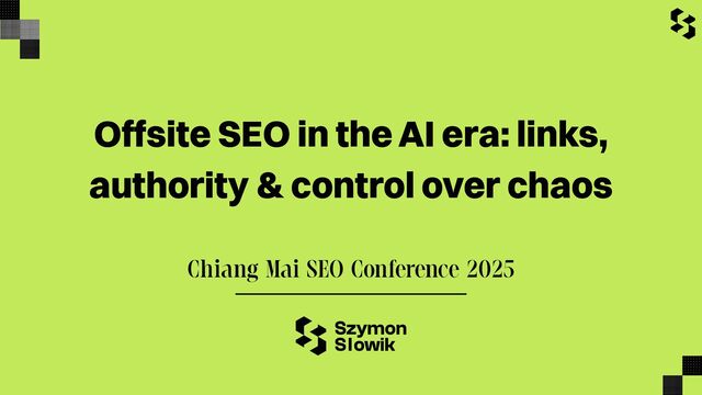 This deck is based on Szymon Słowik’s talk at Chiang Mai SEO Conference 2025 and explores how modern off-site SEO actually works today — beyond outdated simplified link-centric thinking and AI-driven hype.