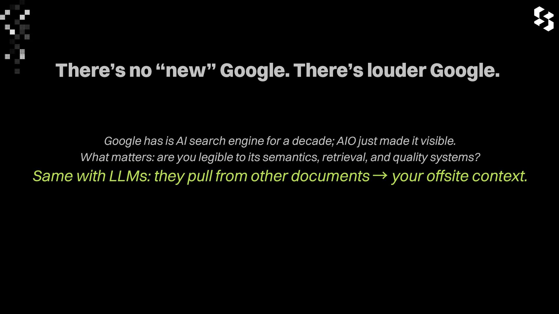 - How off-site signals impact AI search, AI Overviews, and LLM recommendations.