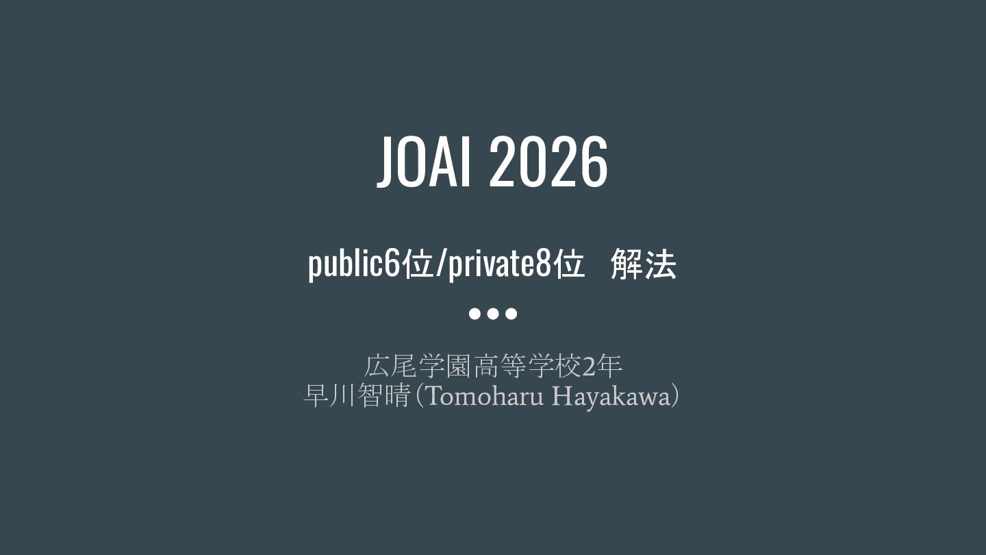 JOAI 2026 public6位/private8位 解法 広尾学園高等学校2年 早川智晴(Tomoharu Hayakawa)