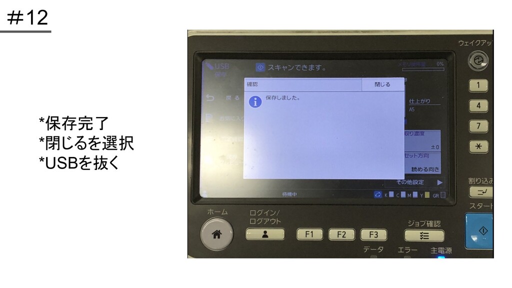 #12 *保存完了 *閉じるを選択 *USBを抜く