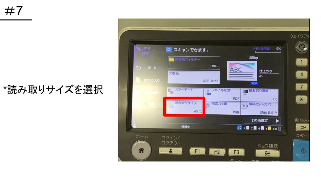 #11 *左にずらしながらスキャン ※スキャンが途中で 中断すると、 保存ファイルが分割 されるので、1度で スキャンする *メモを設置してスタート ボタンを押す