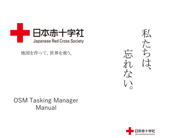 地図を作って、世界を救う。 OSM Tasking Manager Manual 私 た ち は 忘