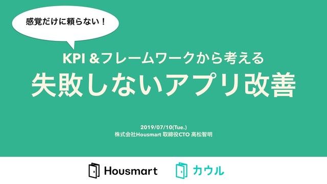 KPI &ϑϨʔϜϫʔΫ͔Βߟ͑Δ ࣦഊ͠ͳ͍ΞϓϦվળ 2019/07/10(Tue.) גࣜձࣾHousmart औకCTO ߴদஐ໌ ײ͚֮ͩʹཔΒͳ͍ʂ