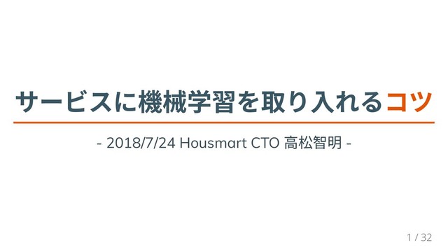 機械学習をやってる企業は2 通り 機械学習技術を 機械学習技術を 機械学習技術を 機械学習技術を 機械学習技術を 機械学習技術を 作る企業 作る企業 作る企業 作る企業 作る企業 作る企業 Google, PFN(Prefeered Networks) Google, PFN(Prefeered Networks) Google, PFN(Prefeered Networks) Google, PFN(Prefeered Networks) Google, PFN(Prefeered Networks) Google, PFN(Prefeered Networks) 機械学習でできることを増やす 機械学習でできることを増やす 機械学習でできることを増やす 機械学習でできることを増やす 機械学習でできることを増やす 機械学習でできることを増やす 使う企業 使う企業 使う企業 使う企業 使う企業 使う企業 ハウスマート ハウスマート ハウスマート ハウスマート ハウスマート ハウスマート, その他多くのWeb 企業 , その他多くのWeb 企業 , その他多くのWeb 企業 , その他多くのWeb 企業 , その他多くのWeb 企業 , その他多くのWeb 企業 自分たちのビジネス課題を( 必要な時に適切な) 機械学習の手 自分たちのビジネス課題を( 必要な時に適切な) 機械学習の手 自分たちのビジネス課題を( 必要な時に適切な) 機械学習の手 自分たちのビジネス課題を( 必要な時に適切な) 機械学習の手 自分たちのビジネス課題を( 必要な時に適切な) 機械学習の手 自分たちのビジネス課題を( 必要な時に適切な) 機械学習の手 法を用いて解決する 法を用いて解決する 法を用いて解決する 法を用いて解決する 法を用いて解決する 法を用いて解決する 17 / 32