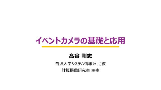 本チュートリアルでは,イベントカメラの基本的な原理に加えて,発展的な応用研究について紹介する.イベントカメラとは,輝度変化に反応する特殊なカメラであり,各画素において独立かつ非同期に,一定以上の輝度変化を「イベント」として記録する.生体模倣として誕生したが,高時間分解能や高ダイナミックレンジ,低消費電力等の特長から,ロボティクス分野やコンピュータビジョン分野への応用が注目されている.イベント情報は,一般的なカメラが記録する固定フレームレートの画像とは大きく異なるため,画像に基づく従来のアルゴリズムをそのまま展開できない.一般には,イベントから画像を復元する方法が取られるが,イベントそのものを活用する研究も存在する.応用では,符号化計測やアクティブセンシングへの応用について紹介する.