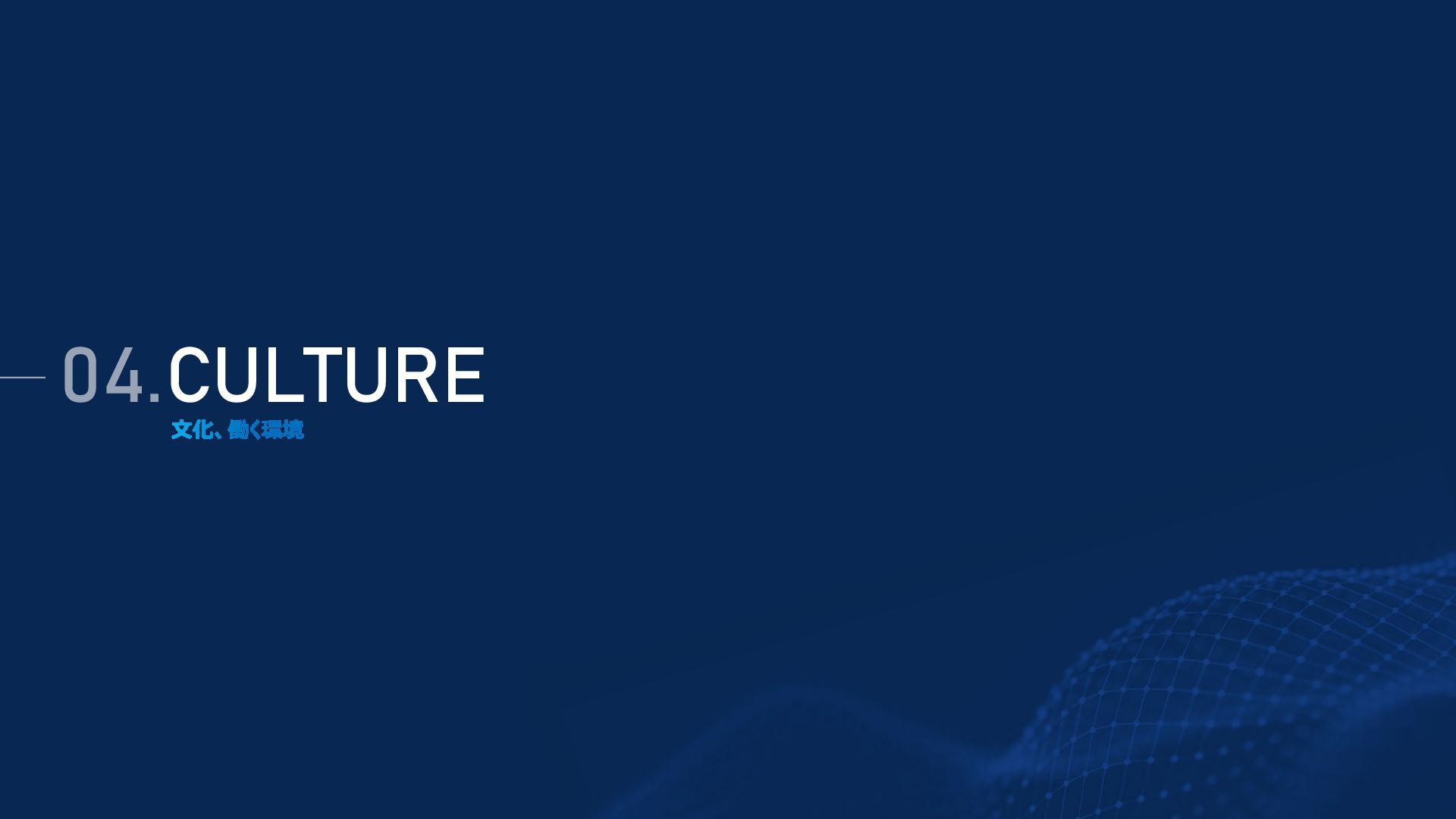 常に前進することを目指します。 この瞬間に 人事を尽くす 本事業は社会・ステークホルダーの方々に共感が得られなければ成し得ない事業です。 共感を得る為には、共感される組織になる必要があり、共感される組織になる為には社員一人一人が共感される 人間となる必要があります。 よって、全社員が高いEQとコミュニケーション能力の獲得に努めます。 共感 過去の偉業を振り返えると情熱と忍耐力無しに成し得た物事はありません。 近年のユニコーン化したスタートアップにおいても同様。 昭和・平成・令和と時代が変遷しても変わらない成功への本質と信じており、 本事業の社会実装実現迄やり抜くことを目指します。 情熱と忍耐力 当社は最高水準の人材が集まる、最高水準の人材へ成長する場を目指します。 よって全社員に敬意を払い、且つ大人として扱うことにより自由度を与え、同時に責任も持つこととなります。 よって、高いオーナーシップを持ちつつ自発的・能動的行動が行えることが当社の一員となる最低条件と考えております。 オーナーシップ Values