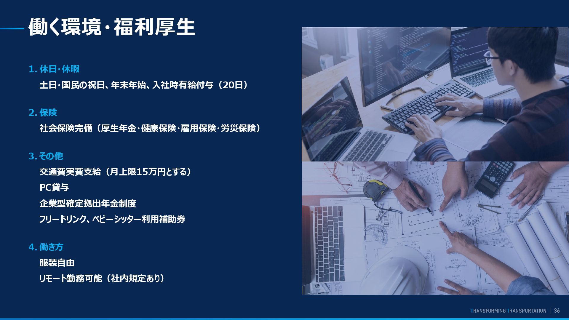 交通費実費支給(月上限15万円とする) PC貸与 企業型確定拠出年金制度 フリードリンク、ベビーシッター利用補助券 4. 働き方 服装自由 リモート勤務可能(社内規定あり)