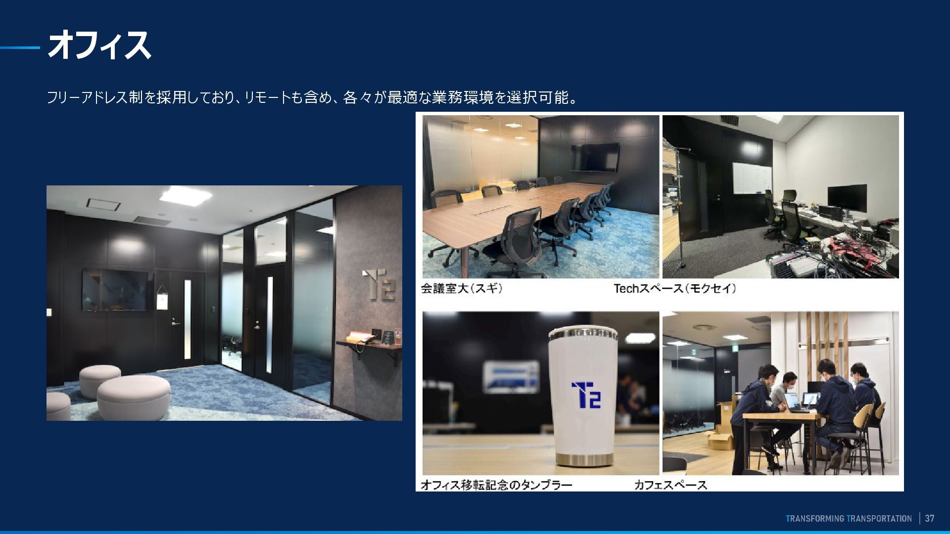 週3日以上のリモートワーク率は45% 関東圏以外の在住社員の割合は15% ハイブリッドワーク推奨の環境を 活かしながら勤務しています。 オフィスでは17時(金曜日は16時)から 19時まで社員交流・リフレッシュを目的とし て飲酒ができます。 チームビルディングを目的とした会社負担 での懇親会も実施しています。 50% 35% 65% 57% 私服 スーツは 0%!! ビジネス カジュアル 23% T2ポロシャツ/Tシャツ 20% 84% 子育てをしながら勤務するパパ・ママも多く 在籍しています。 リモートワークの日に「16時からは保育園 へのお迎えに」が可能です。
