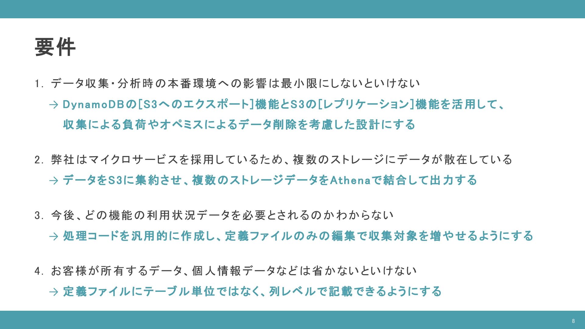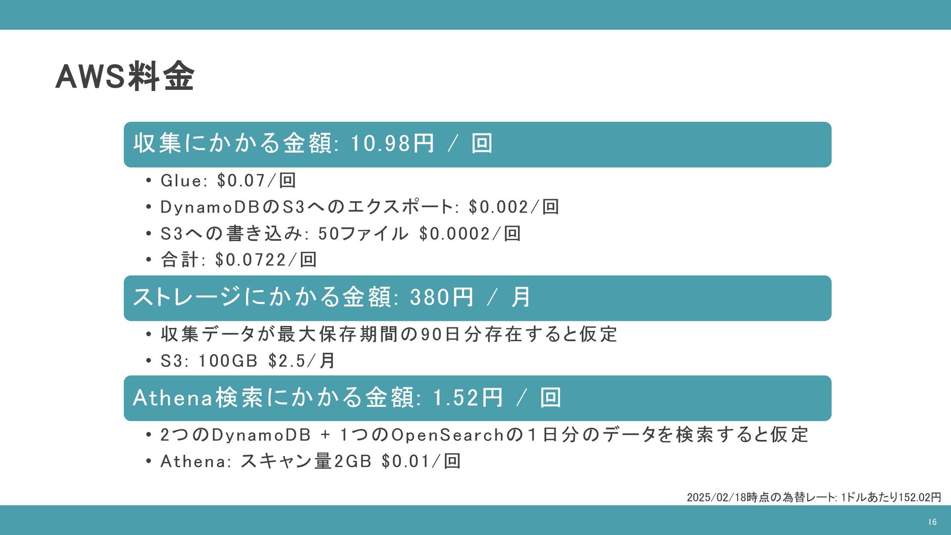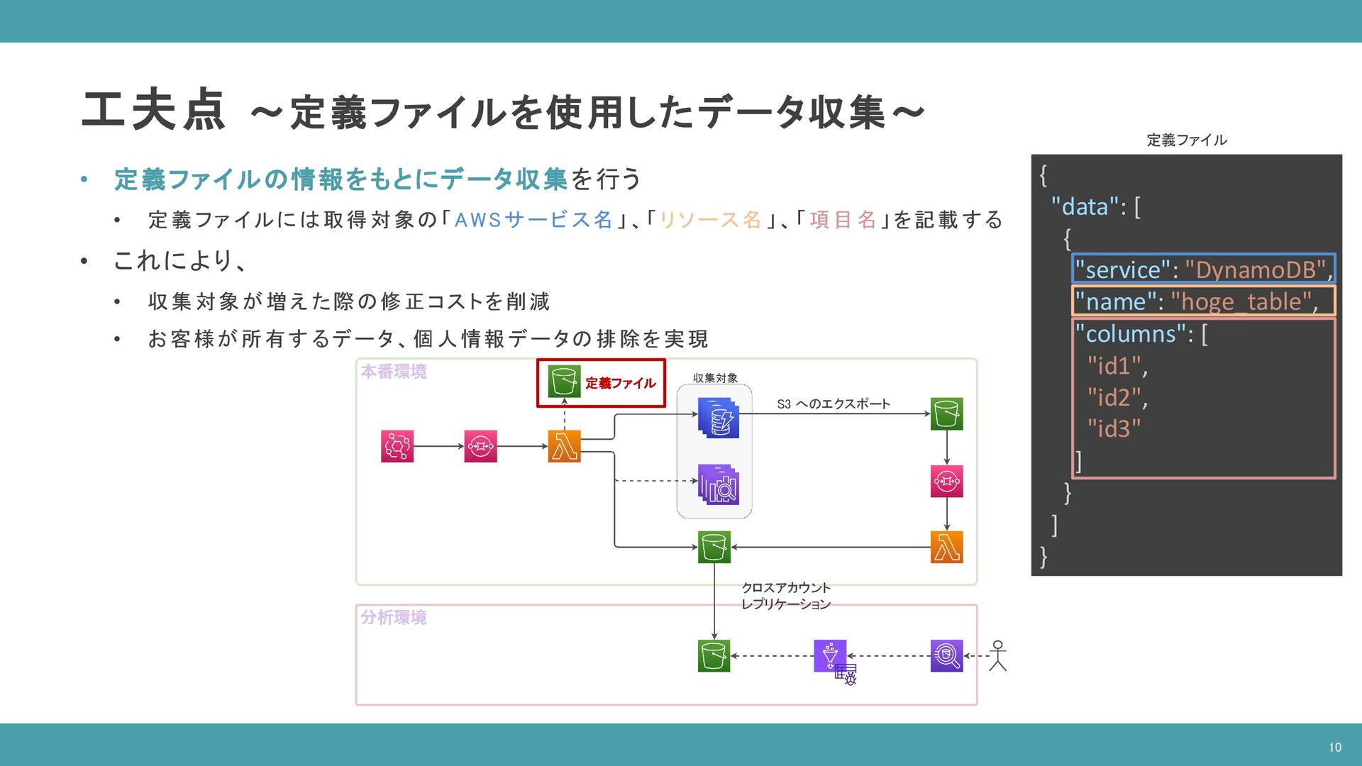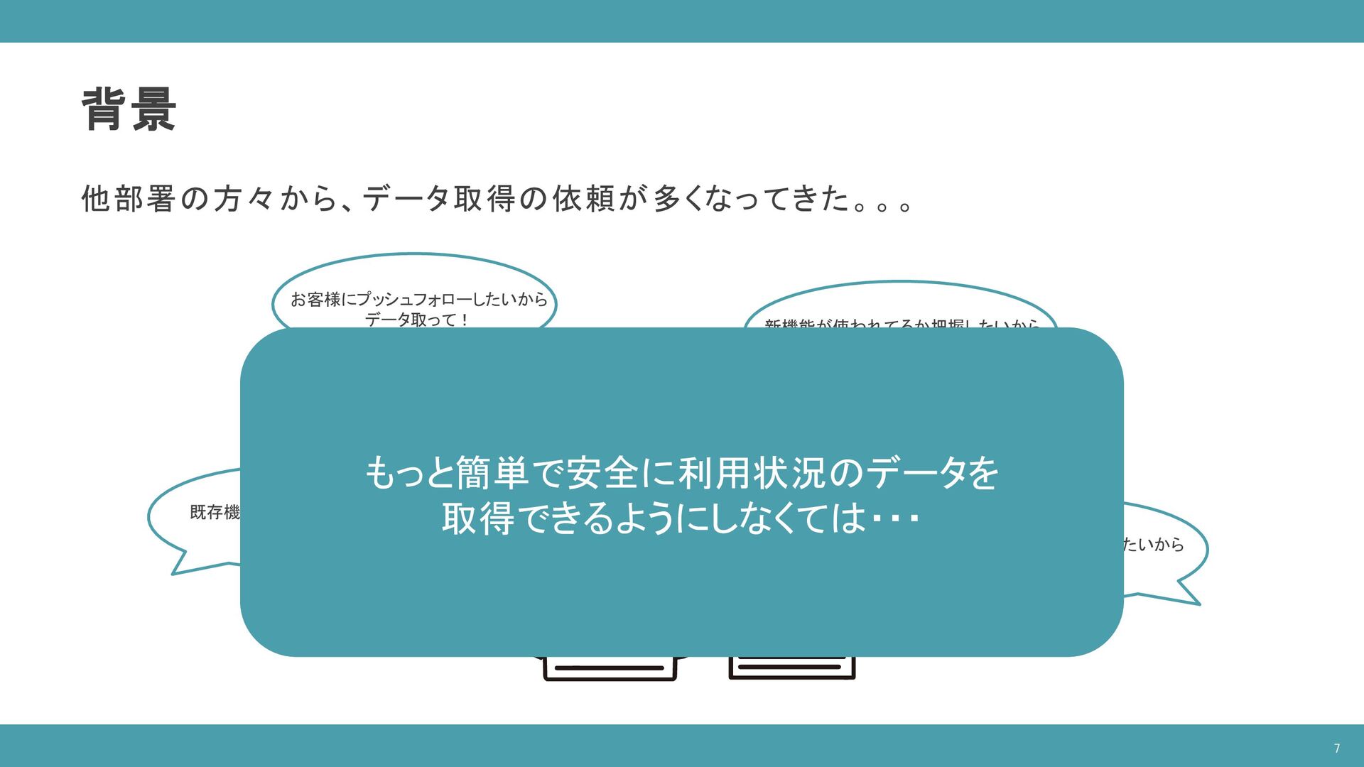 ( SELECT companies.* FROM "database"."companies" companies INNER JOIN "database"."latest_date" latest ON companies.date = latest.latest_date AND latest.table_name = 'companies‘ ), contracts AS ( SELECT contracts.* FROM "database"."contracts" contracts INNER JOIN "database"."latest_date" latest ON contracts.date = latest.latest_date AND latest.table_name = 'contracts‘ ), devices AS ( SELECT devices.company_id as company_id, COUNT(devices.id) as count FROM "database"."devices" devices INNER JOIN "database"."latest_date" latest ON devices.date = latest.latest_date AND latest.table_name = 'devices‘ GROUP BY devices.company_id ) SELECT companies.id as “企業ID”, companies.name as "企業名", contracts.plan as "契約プラン", COALESCE(devices.count, 0) as "デバイス数" FROM companies INNER JOIN contracts ON companies.id = contracts.company_id INNER JOIN devices ON companies.id = devices.company_id ORDER BY devices.count DESC; 企業情報 テーブル 契約情報 テーブル デバイス情報 テーブル ※ 開発環境のダミーデータを使用 14