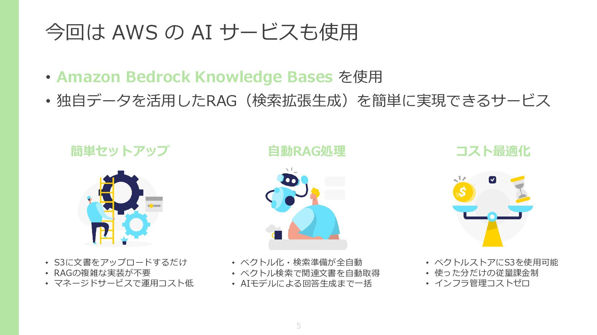 今回は AWS の AI サービスも使用 • Amazon Bedrock Knowledge Bases