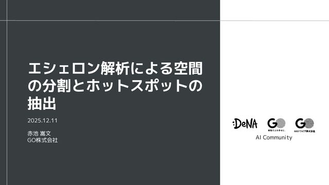 AI Community 2025.12.11 赤池 嵩文 GO株式会社 エシェロン解析による空間 の分割とホットスポットの 抽出