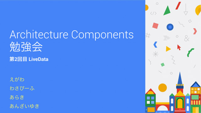 Architecture Componentsษڧձ ͱ • Architecture Componentsͷجૅࣝʹֶ͍ͭͯͿษڧձ • ओ࠵ɿGDG Tokyo ϋογϡλά: