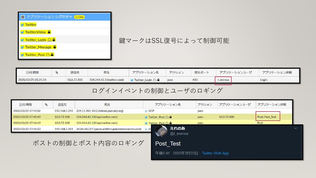 鍵マークはSSL復号によって制御可能 ログインイベントの制御とユーザのロギング ポストの制御とポスト内容のロギング