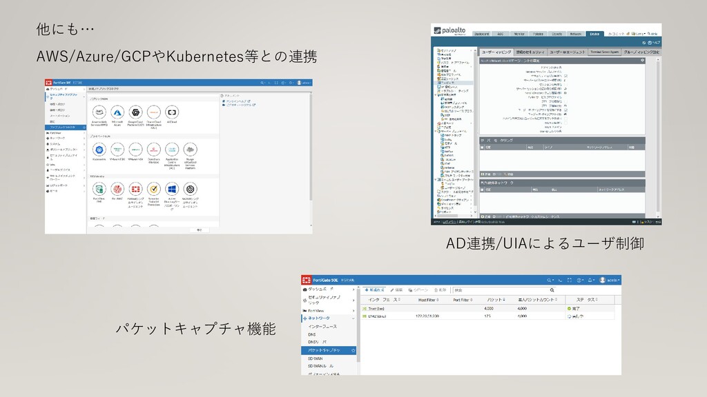 AD連携/UIAによるユーザ制御 パケットキャプチャ機能 AWS/Azure/GCPやKubernetes等との連携 他にも…