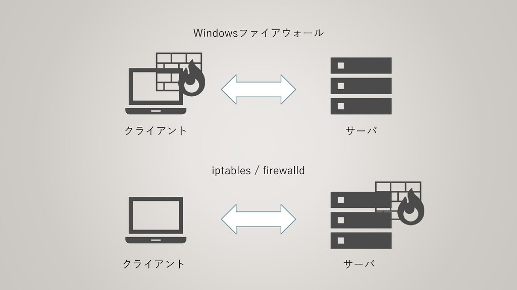 iptables / firewalld Windowsファイアウォール サーバ クライアント サーバ クライアント