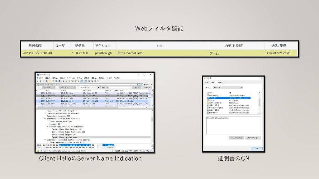 Webフィルタ機能 Client HelloのServer Name Indication 証明書のCN