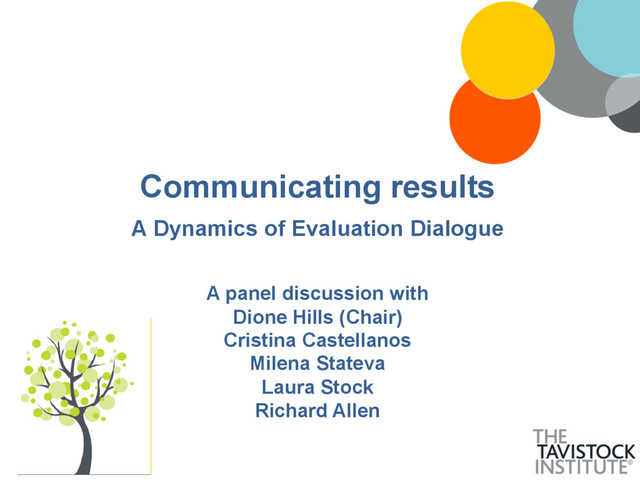 The fourth (and last) in the series of lunchtime dialogues on the Dynamics of Evaluation. A panel discussion between Dione Hills (Chair), Cristina Castellanos, Milena Stateva, Laura Stock and Richard Allen.