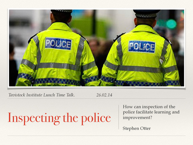 Stephen Otter, HMIC, joined the TIHR 'Food for Thought' lunchtime talk series to ask how his experiential learning through the Tavistock Institute’s Group Relation tradition is offering insight to the way he approaches the Police inspection process.