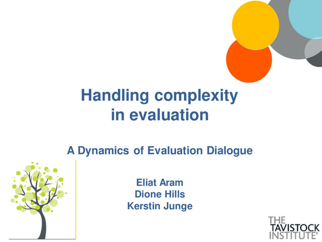 Powerpoint from lunchtime event is the third of four dialogues in the Dynamics of Evaluation series, and part of our celebration of 2015 International Year of Evaluation. Each event is taking a different perspective on challenges that can occur in evaluation practice and how these might be addressed. In this third dialogue, we plan to explore with you how far a better understanding of complexity theory might help us make sense of, and handle some of these challenges.