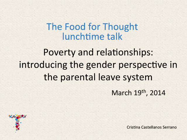 To open the debate among the public and to disseminate main conclusions about parental leave system reached from evaluation and research projects, Cristina Castellanos Serrano, TIHR Senior Researcher/ Consultant, introduced a session on the parental leave system at the Institute’s Food for Thought lunchtime talk series.