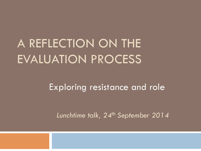 to evaluation? ¨ How can it manifest itself during an evaluation process? ¨ What impact can it have on the evaluator’s role? ¨ What strategies can be helpful in managing resistance? ¨ Some conclusions