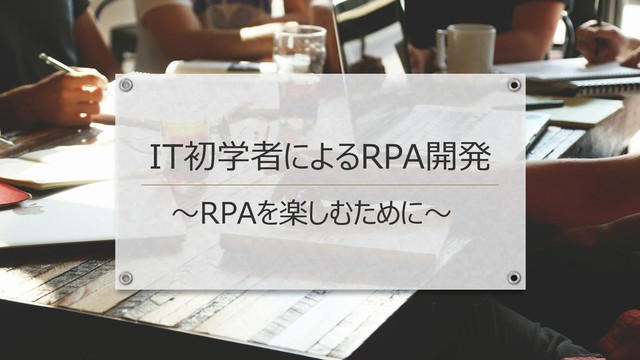 IT初学者によるRPA開発 ~RPAを楽しむために~
