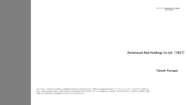 1. 企業概要 2. 業績 3. 業界動向 4. 企業分析 5. 財務分析 6. Appendix