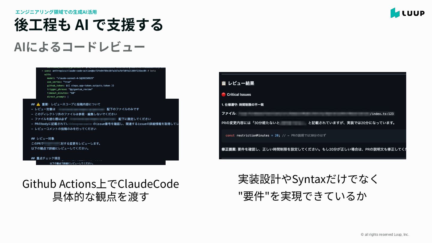 © all rights reserved Luup, Inc. 後⼯程も AI で⽀援する AIによるコードレビュー