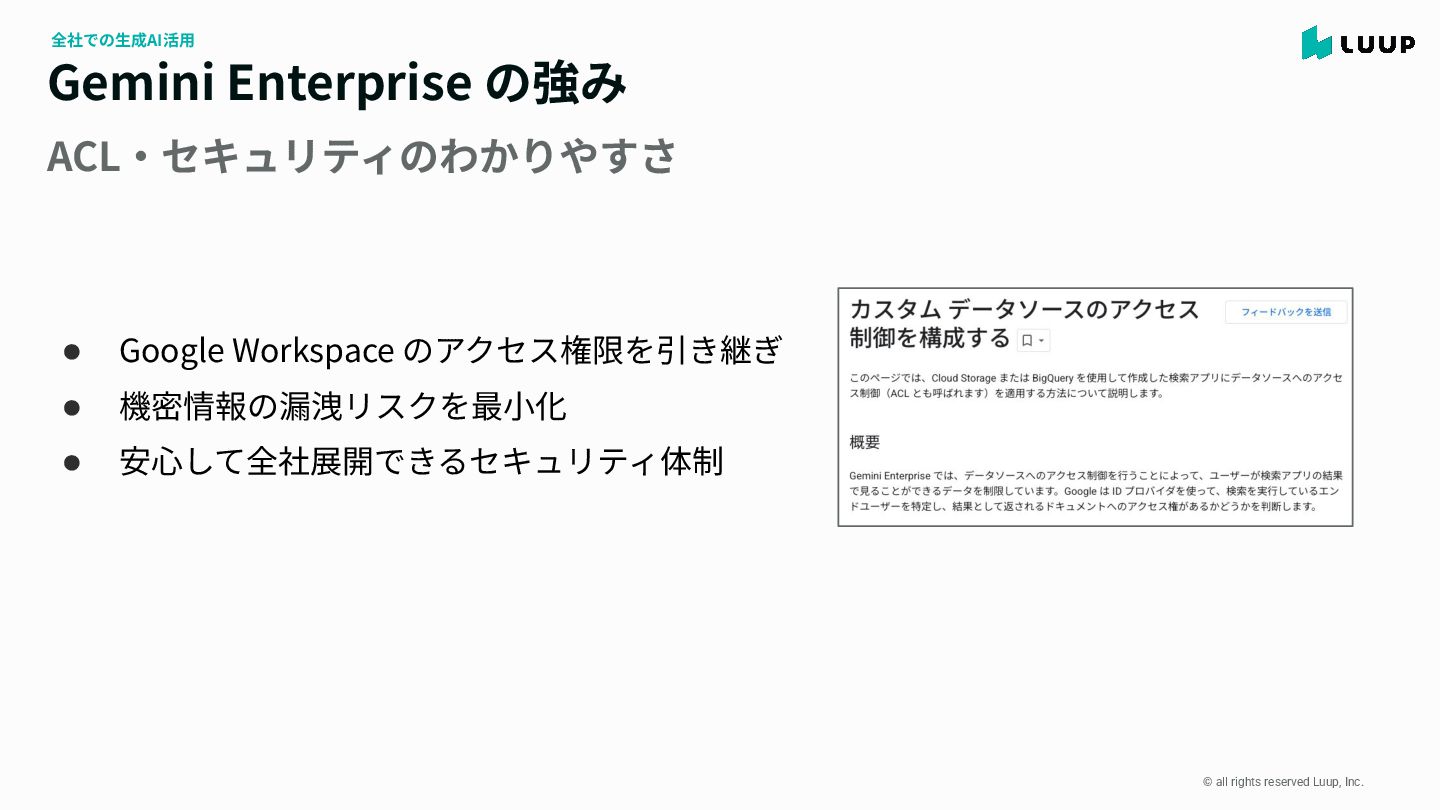 © all rights reserved Luup, Inc. Gemini Enterprise の強み ACL‧セキュリティのわかりやすさ