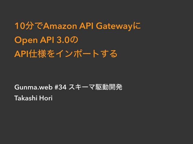 10ͰAmazon API Gatewayʹ Open API 3.0ͷ API༷ΛΠϯϙʔτ͢Δ Gunma.web #34 εΩʔϚۦಈ։ൃ