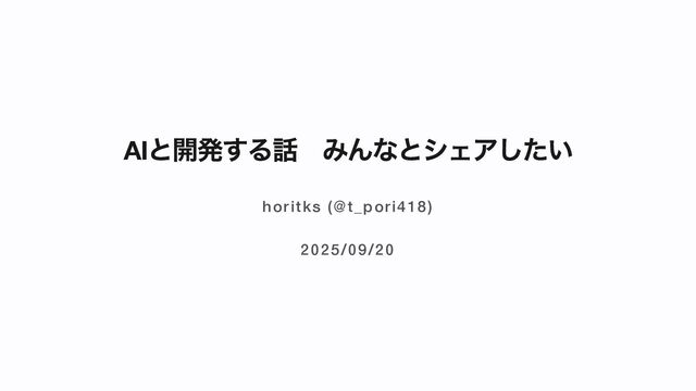 AI と開発する話 みんなとシェアしたい horitks (@t_pori418) 2025/09/20