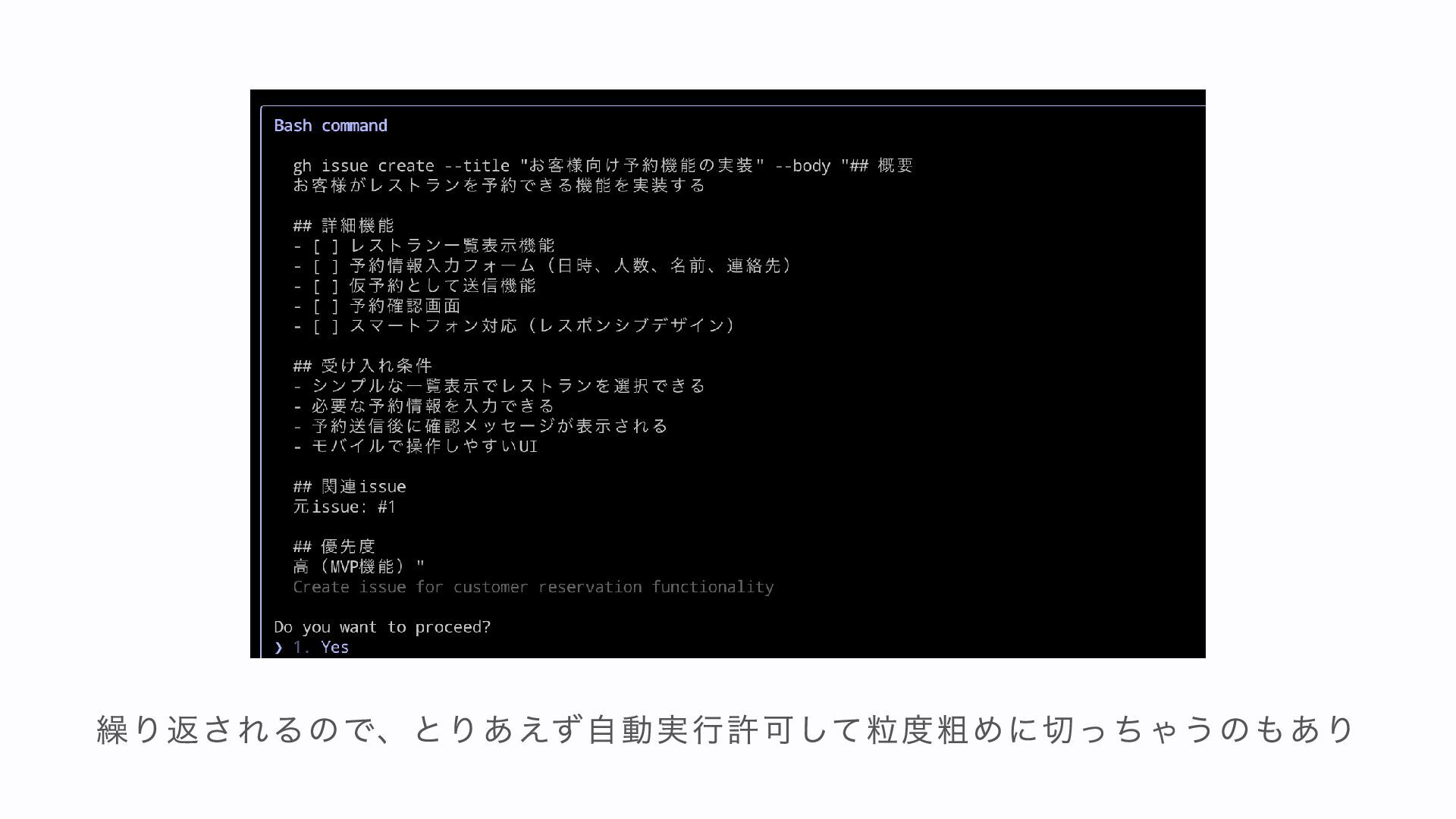 繰り返されるので、とりあえず自動実行許可して粒度粗めに切っちゃうのもあり