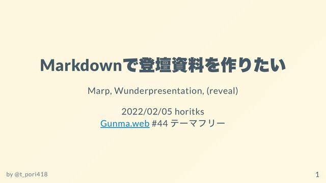 ## 概要 - Markdownで登壇資料を作りたいと思って簡単に調査しました。 - Notion -> Wunderpresentation - VSCode -> Marp (おまけ: vscode-reveal)