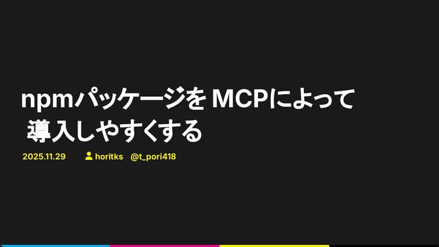 npmパッケージを MCPによって 導入しやすくする 2025.11.29 horitks @t_pori418