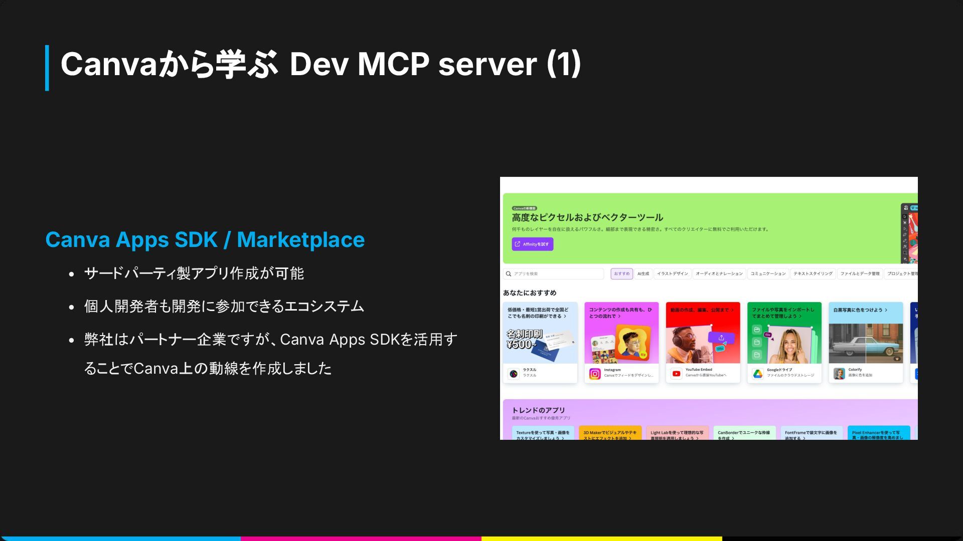 Canvaから学ぶ Dev MCP server 1 Canva Apps SDK / Marketplace